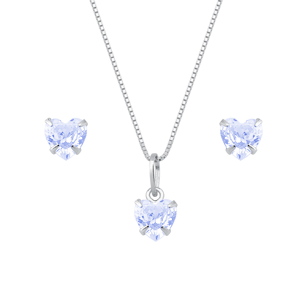 Brinco: 0,5 cm x 0,5 cmColar: 0,5 cm x 0,5 cm – 45 cmPedra: ZircôniaMaterial: Prata 925