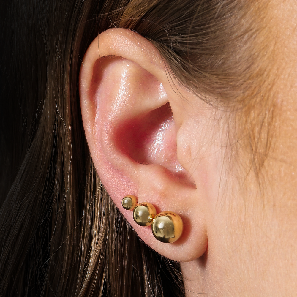 Esferas: 0,8cm, 0,6cm e 0,4cm. Banho: 10 Camadas de Ouro 24K. Possui Tecnologia Antialérgica.